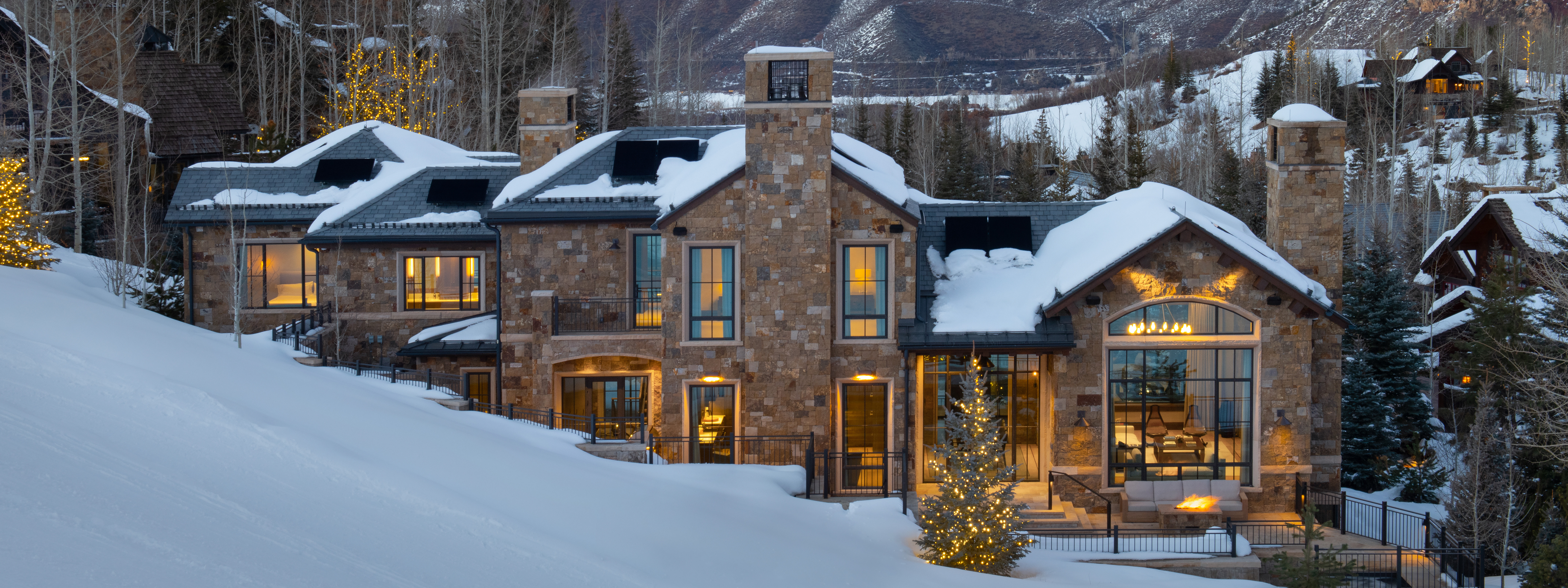 A blend of tasteful, reserved opulence and sustainable elements makes the Aspen Residence a true gem nestled above Tiehack Express chairlift on Buttermilk Mountain in Aspen. Extensive expertly crafted stonework outside, and the stone-and-plaster interior, gives the home a timeless mountain “castle” feel. Repurposed 200-year-old stone floors imported from France, sustainably forested woodwork, recycled plastic roofing, solar energy (with a Sonnen battery back-up), and marble kitchen slabs quarried locally at Yule Marble in Marble, CO, come together as thoughtful, sustainable touches throughout. This distinguished Maroon Creek Club home is a ski-in, ski-out property off of Buttermilk Ski Resort. A spacious stone patio for enjoying the incredible natural setting features a pool, a spa, and an outdoor water feature, complimented by a paver auto court outside of a two-car garage on the property. Inside, an exposed steel staircase, four fireplaces, and a home gym make this residence a truly elegant retreat.