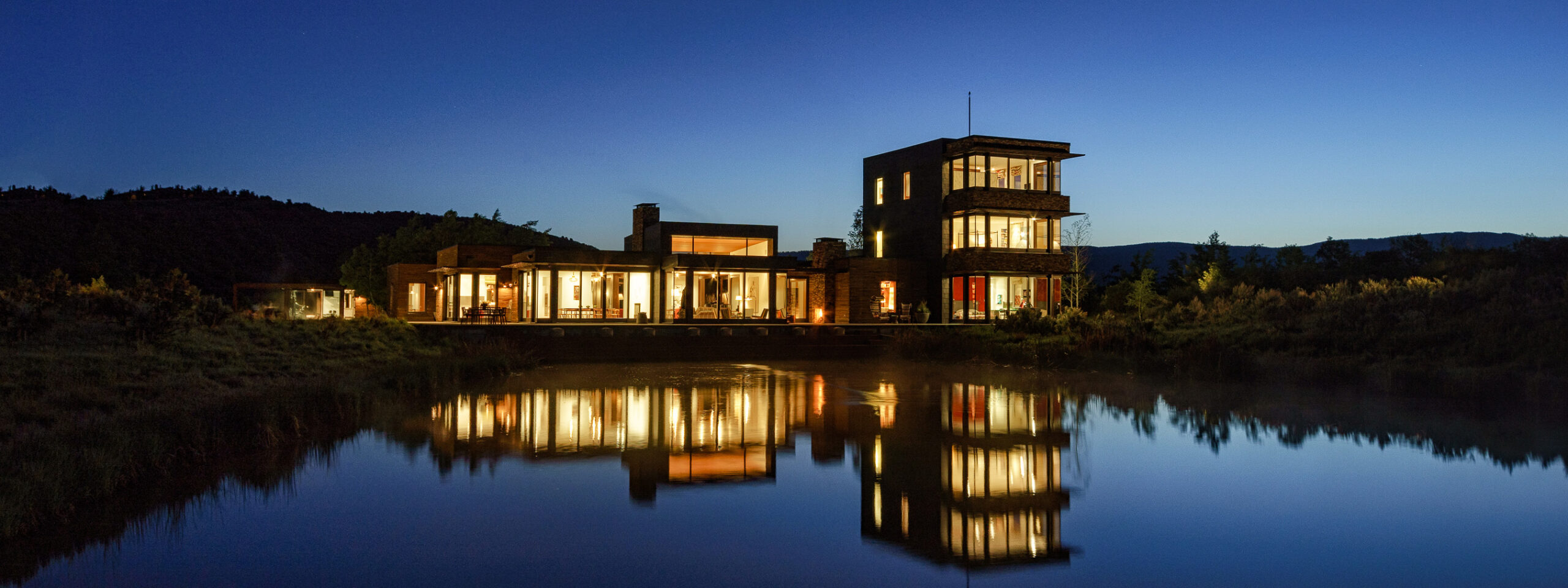 With a minimalist profile and a tranquil relationship to nature inspired by Henry David Thoreau’s iconic book, the Walden House is a seven bed, nine-and-a-half bath masterpiece. Designed by renowned architect Annabelle Selldorf, main house is a series of living pavilions arranged around a central courtyard, with a three-story tower of bedrooms topped by the master suite. This tower commands incredible views of the manmade pond by New York celebrity landscape architect Edwina von Gal, the surrounding national forest, and the Gore and New York Mountain ranges. Meticulously placed beetle kill pine creates the home’s façade, and winding glass-walled central corridor connects the different functional spaces throughout the home. These spaces are wrapped in floor-to-ceiling glass that creates an effortless flow between indoor and outdoor living, enhanced by an infinity pool, in-ground spa, and home gym as part of the amenities. Hand-dyed lamb’s wool imported from Holland gives a cozy accent in both the study and master suite, a stark contrast to the utilitarian and gleaming kitchen with concealed appliances and stainless-steel countertops. Incredible views are offered in every space in the home, and materials throughout such as copper, field rock fireplaces, and log-pole siding (along with the beetle kill pine) keep the home rooted in the mountains. Included on the property are a pool house, boat house, barn/garage, and a caretaker’s cottage.